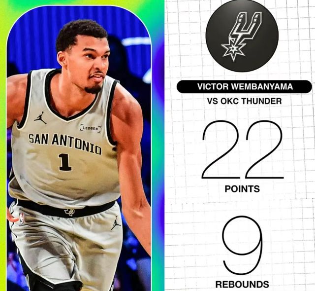 兩隊的第一次交手,在NBA杯賽半決賽;從比賽過程來看,馬刺打得并不輕松,甚至一度被雷霆壓制到最多落后16分。但文班亞馬依舊是絕對的天賦壓制,當場比賽替補出戰,僅僅只打了20分鐘,就拿下22分9籃板2助攻,個人正負值高達+21。