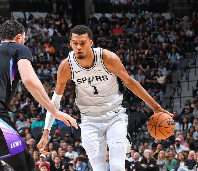 爵士客場挑戰馬刺,馬刺少了福克斯,爵士是背靠背作戰且少了凱斯勒、貝利,本以為馬刺能輕松贏球,沒想到意外發生了,馬刺首節贏了8分,但第二節爵士贏了18分,比賽走勢就此被爵士掌控,最終爵士以13分優勢擊敗馬刺,終結了馬刺的8連勝。馬爾卡寧16中11(三分6中5)得到29分5板3斷,喬治18中7得到28分5板6助2斷,馬刺方面文班21中12得到32分7板3助5帽,凱爾登15中10(三分7中5)得到27分10板,卡斯爾19中8得到20分2板7助2斷。