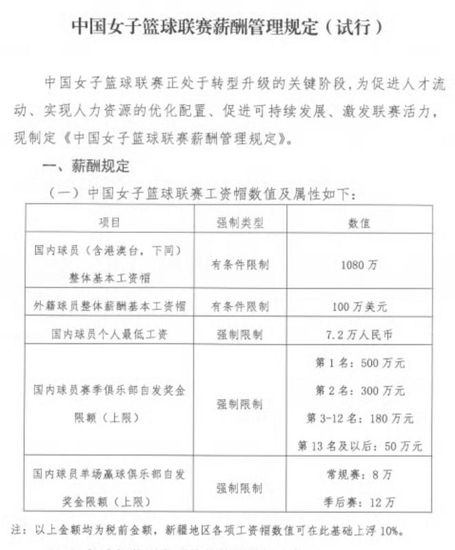 1,國內球員,包含港澳臺球員,加在一起的整體工資不得超過1080萬人民幣。
