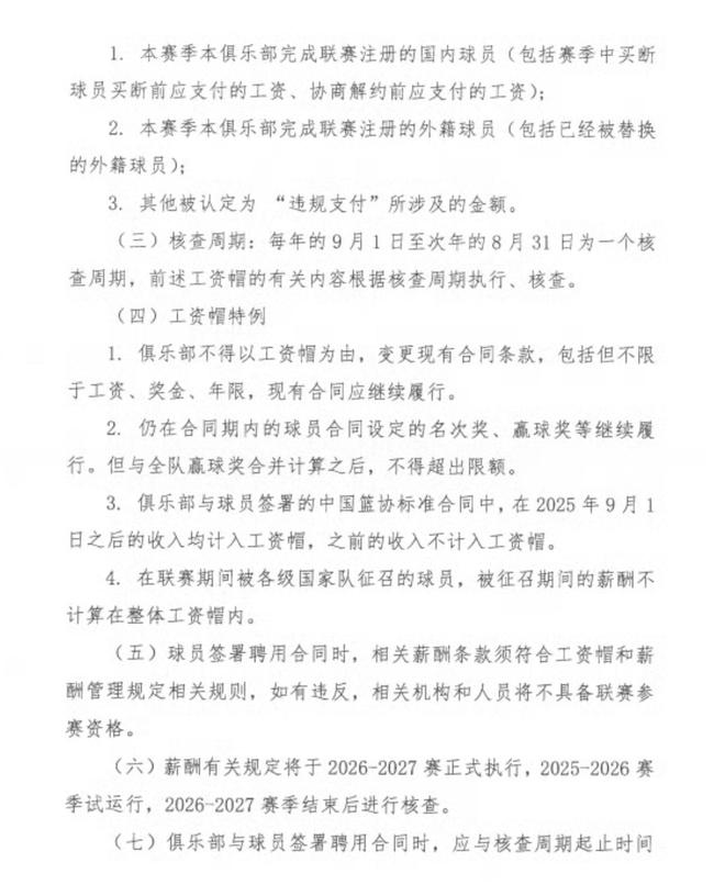 這次的工資帽制度,在本賽季是試行階段,下賽季,也就是2026-2027賽季將正式運行。我們來看一下此次規定的幾項具體細則: