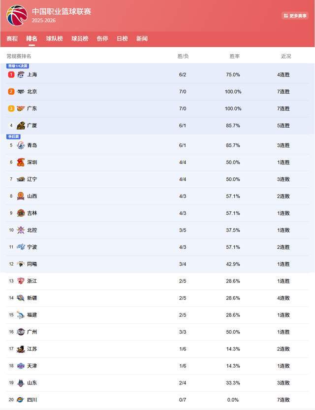 隨著此役落敗,遼寧男籃吞下3連敗,戰(zhàn)績也變成4勝4負(fù),排名繼續(xù)下滑,已經(jīng)掉出前6名,直接來到第7位。