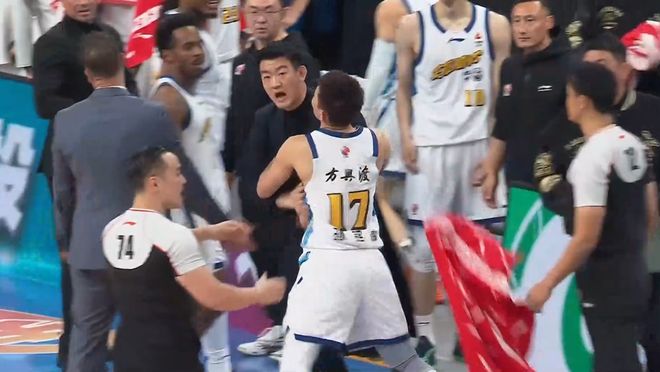 朱俊龍向身旁的裁判員孫健表達了抗議,但是孫健并未給予周琦任何吹罰,而這也讓浙江廣廈主帥王博非常不滿,在替補席上就沖著孫健吼了起來,孫健也沒有慣著王博,隨后給王博吹了一次技術犯規,加上之前布朗的那次,王博背上了1.5次技術犯規。