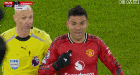 第61分鐘,卡塞米羅對自己被換下表示不解