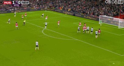 第90分鐘,紐卡前場圍攻,米利停球打門踢飛