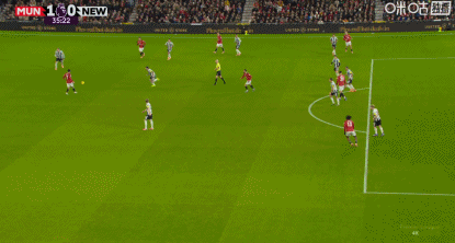 第41分鐘,紐卡前場連續斷球,墨菲傳中造險