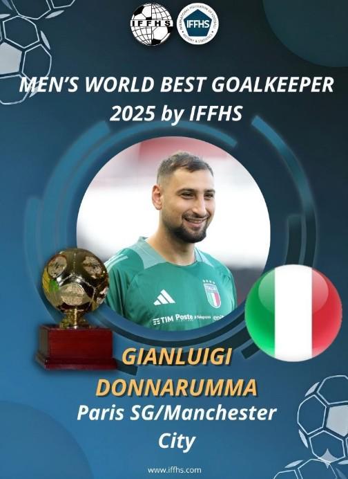 北京時間12月27日,國際足球歷史和統計聯合會(IFFHS)官方宣布,意大利國門、目前效力于曼城的多納魯馬當選由他們評出的2025年世界男足最佳門將。