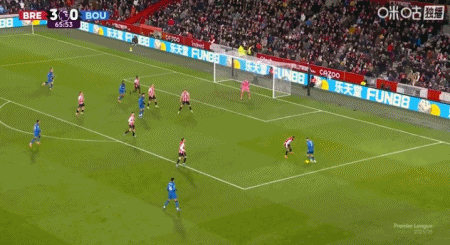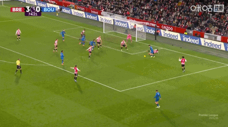 第90+6分鐘,沙德頭球破門完成帽子戲法,布倫特福德4-1伯恩茅斯