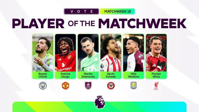 北京時間12月29日,英超官方公布了聯賽第18輪最佳球員候選名單,這6名球員為謝爾基、多古、杜布拉夫卡、沙德、沃特金斯、維爾茨。