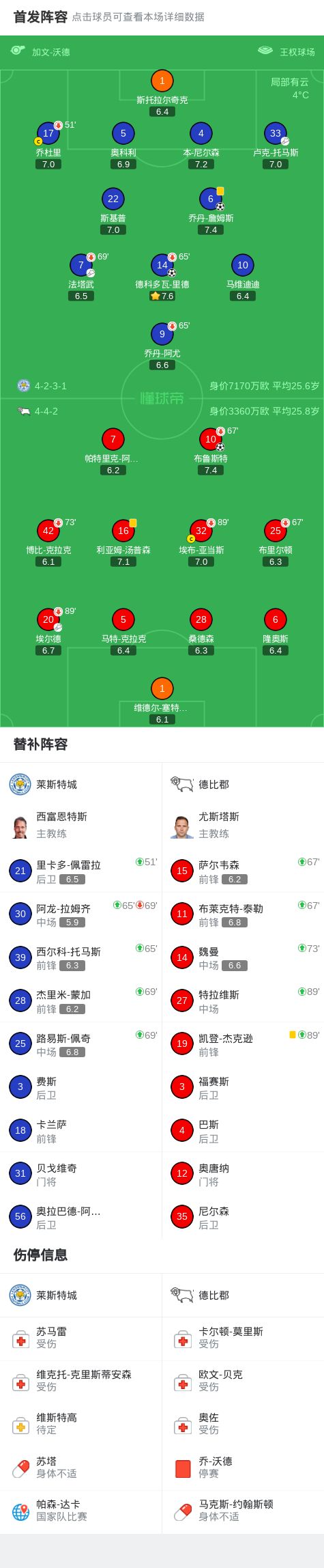 第6分鐘,萊斯特城球員法塔武助攻德科多瓦-里德打入一球。
