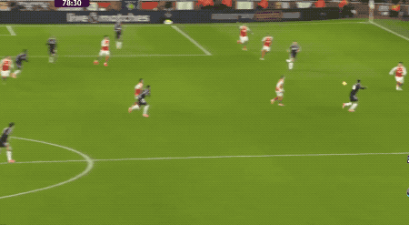 下半場開始僅僅3分鐘,阿森納獲得本場比賽的第一個角球,薩卡將球開出,加布里埃爾搶在馬丁內斯之前,將球打進。