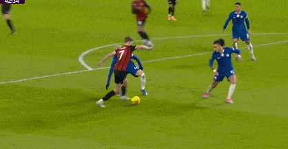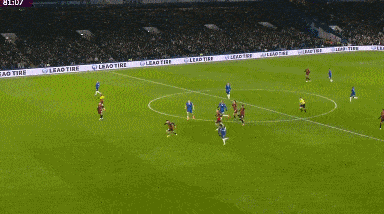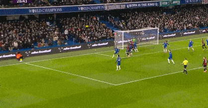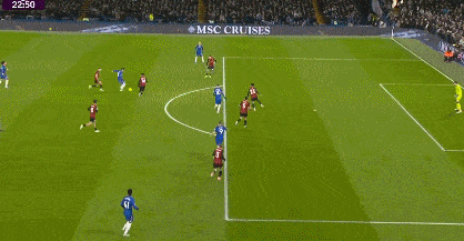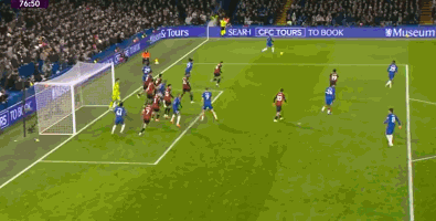 第42分鐘,布魯克斯右路下底傳中,切爾西禁區內風聲鶴唳將球解圍。