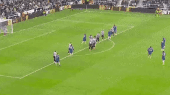 來到下半場,藍軍開始全力反撲。第49分鐘,隊長詹姆斯一腳精彩任意球世界波,攻破紐卡斯爾大門。