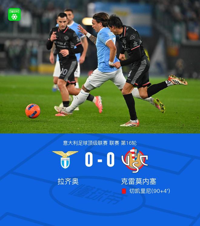 北京時(shí)間12月21日意大利足球頂級(jí)聯(lián)賽 聯(lián)賽 第16輪,拉齊奧主場(chǎng)對(duì)陣克雷莫內(nèi)塞。最終比分拉齊奧 0-0 克雷莫內(nèi)塞。