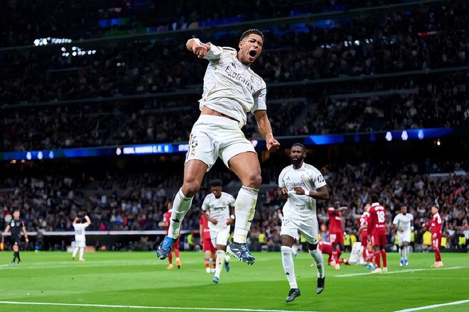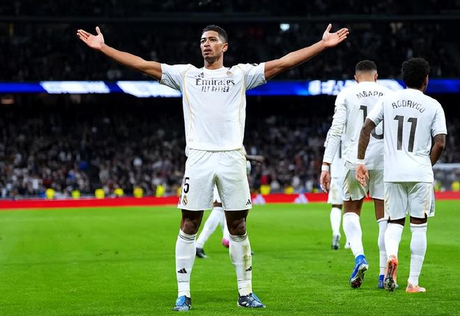 在此之后皇馬在逐漸掌控場上的局勢;第17分鐘,居萊爾中路推進分球,姆巴佩右路大力抽射滑門而過;第25分鐘,羅德里戈高出角球,赫伊森搶點發力過猛高出;第38分鐘,羅德里戈右路任意球旋入禁區,貝林厄姆搶前點頂出一記勢大力沉且角度刁鉆的頭球,門將弗拉喬季莫斯原地目送皮球入網,1:0!貝林厄姆2025年為皇馬打進13球,隊內僅次于姆巴佩。