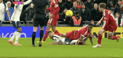 第30分鐘,西蒙斯背后出腳,直接踩在了國家隊老大哥范迪克的跟腱上,VAR介入后,裁判取消黃牌判罰,直接向西蒙斯出示紅牌。
