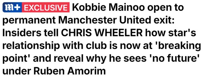 據(jù)報道,此前吉姆·拉特克里夫爵士的管理團隊還不愿意賣掉梅諾,但現(xiàn)在已經(jīng)改變了立場,不再堅決反對,只要價格合理將同意出售。英國天空體育報道稱,若在2026年兩個轉(zhuǎn)會窗收到「非常好」的報價,梅諾可以加盟其他俱樂部。