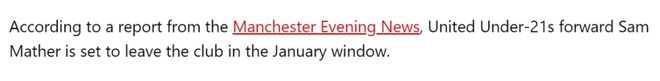 曼聯(lián)青訓(xùn)小將薩姆·馬瑟(Sam Mather)將在1月份冬季轉(zhuǎn)會窗離隊,他在夏窗最后時刻因與土超的開塞利體育談判失敗沒能離開,只能在紅魔青訓(xùn)體系繼續(xù)浪費了半年時間。