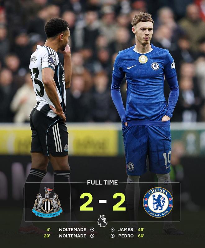 坐鎮圣詹姆斯公園的紐卡斯爾一上來就打出了夢幻開局:第4分鐘,切爾西門將桑切斯雖完成撲救,但沃爾特馬德補射破門,喜鵲閃擊得手,紐卡1-0領先;第20分鐘,戈登傳中再度找到沃爾特馬德,后者梅開二度,紐卡2-0領先,短短20分鐘,切爾西完全被打蒙圈了。