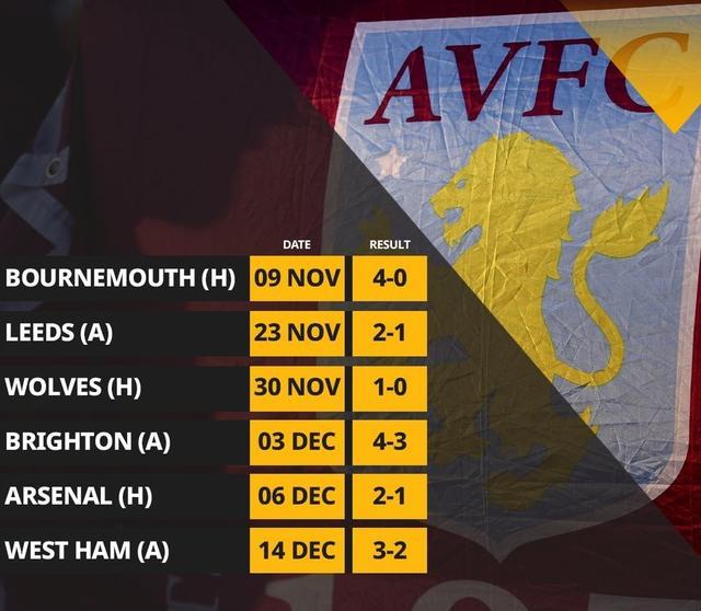 維拉最近6場英超比賽全部取得勝利,先后擊敗伯恩茅斯(4-0)、利茲聯(2-1)、狼隊(1-0)、布萊頓(4-3)、阿森納(2-1)和西漢姆聯(3-2)。