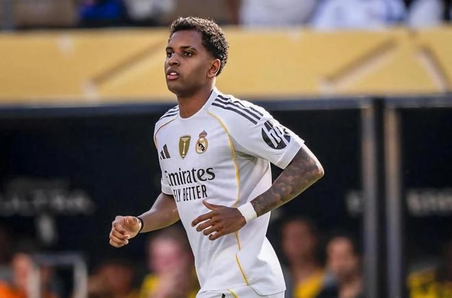 此役,羅德里戈迎來近4場比賽的第3次首發,與姆巴佩、維尼修斯組成了皇馬的鋒線三叉戟。開場之后,雙方在場上展開對攻,都創造了不少得分機會。第39分鐘,皇馬獲得前場右側任意球,羅德里戈送出落點極佳的傳球,貝林厄姆頭球破門首開紀錄。3分鐘后,羅德里戈突入禁區倒地,但被判假摔并吃到黃牌。