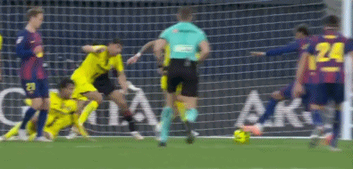 第三次做客陶瓷球場,亞馬爾遭到了對手的針對。第38分鐘,德容中場頭球擺渡,亞馬爾背身拿球,維加飛身雙腳飛鏟,亞馬爾痛苦倒地,主裁判第一時間向維加出示紅牌。